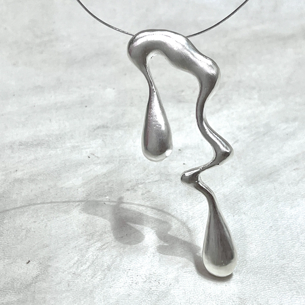 “ El collar Dalí se desliza entre lo real y lo imaginario, con formas organicas que evocan la fluidez del tiempo. Una pieza donde el surrealismo cobra vida en cada detalle. Los Aros completan esta obra de arte única..”