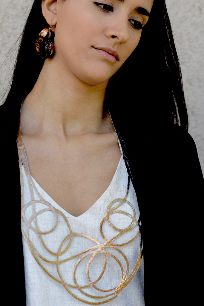 Accesorios contemporáneos realizados a mano en polímeros reciclados intervenidos.
