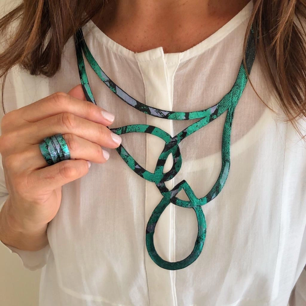 Accesorios contemporáneos realizados a mano en polímeros reciclados.