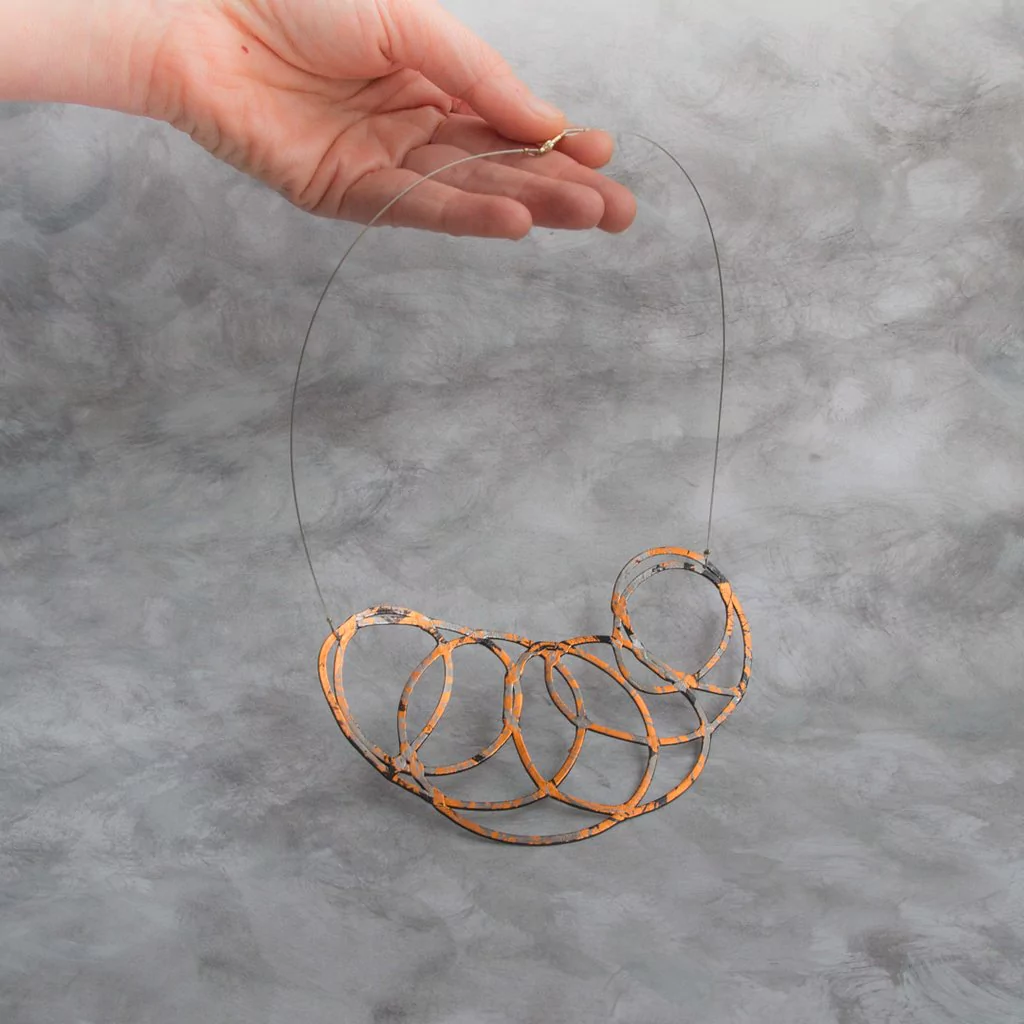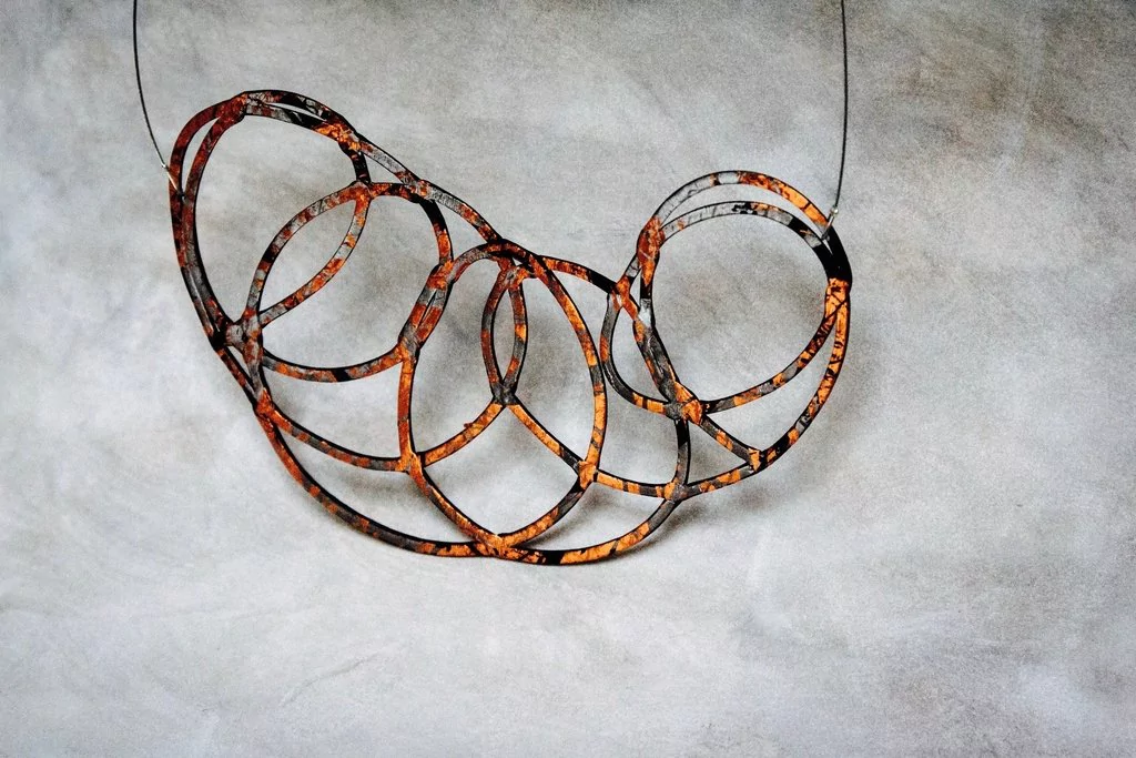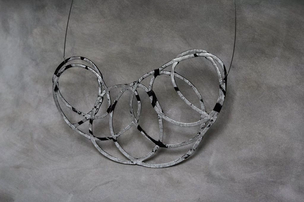 Pieza de joyeria contemporánea, hecha a mano, diseñada por la arquitecta Ruth Schaffer.