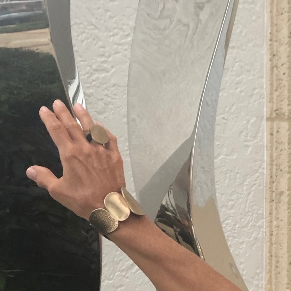 Piezas de accesorio contemporáneo, hecha a mano en silicona en tonos metalizados, diseñada por la arquitecta Ruth Schaffer.